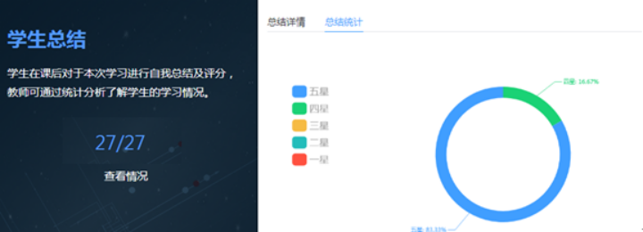 当日线上学习结束后,学生可以主动完成课后作业、学生总结和教学评价。学生对老师教学评价较高,学生评价反馈老师授课条理清晰,知识点拆分详细,讲解耐心仔细,提高了学生对课程的接受程度。老师在课堂上能及时指出学生答题错误之处,引导学生理清思路,找出正确答案。课堂内容丰富,上课秩序有条不紊,课堂氛围轻松,通过理论和实际相结合,与学生积极互动,提高了学生的学习兴趣。