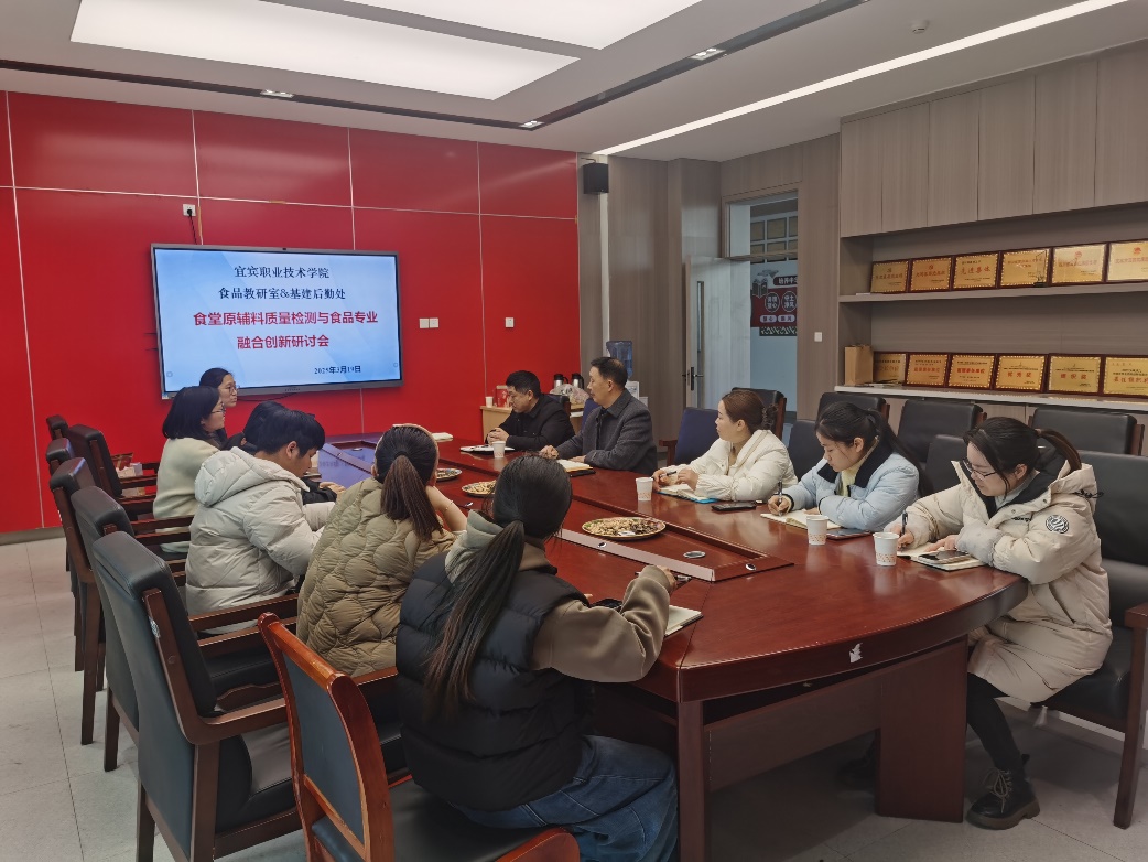 2025年3月19日,五粮液技术与食品工程学院与基建后勤处联合开展了食堂原辅料检测与食品专业融合创新研讨会,我院梁宗余副院长带领食品教研室教师与基建后勤处各管理岗位领导进行了深入交流。